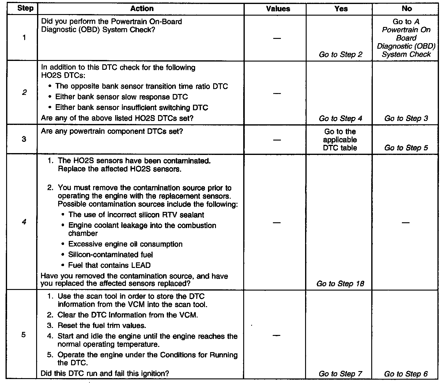 2. Heated oxygen sensor (HO2S) contamination is indicated if multiple response, switching or time ratio HO2S DTCs are set.