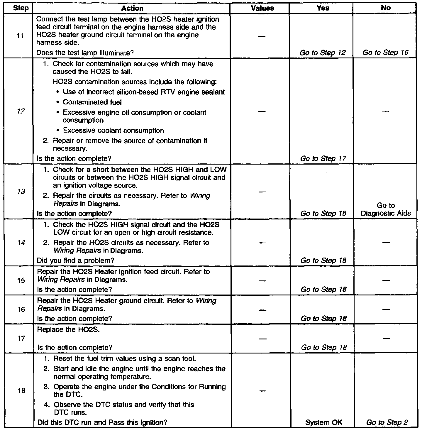 ^ An open or a short to voltage on either the HO2S signal or HO2S low circuits