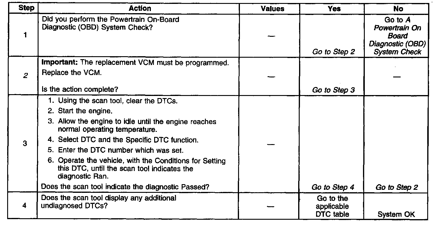 Replace the VCM even if this DTC exists only in history. Refer to VCM Replacement/Programming.