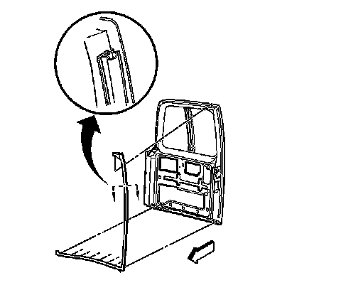 2. Install the right rear door weather-strip to the top of the door. Use GM Weather-strip Adhesive GM P/N 12345097, or Canadian P/N 10953479 or the equivalent, if you are reusing the weather-strip.