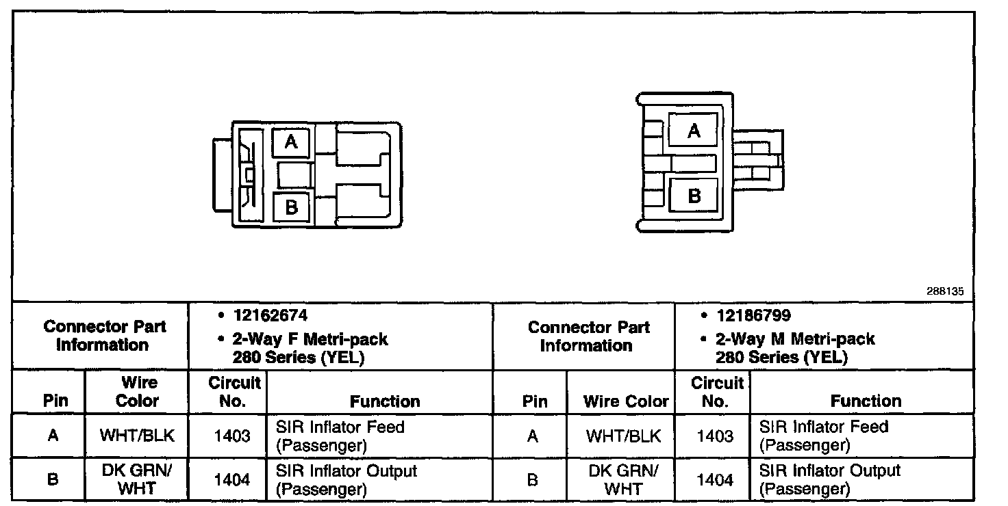 In-Line Harness Connector C216, Inflatable Restraint IP Module (Right):