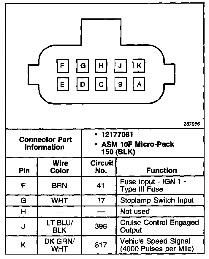 Cruise Control Module Connector (Part 2 Of 2):