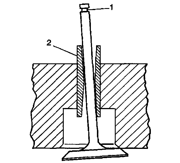 2. Improper valve stem (1) to valve guide (2) clearance may cause excessive oil consumption.