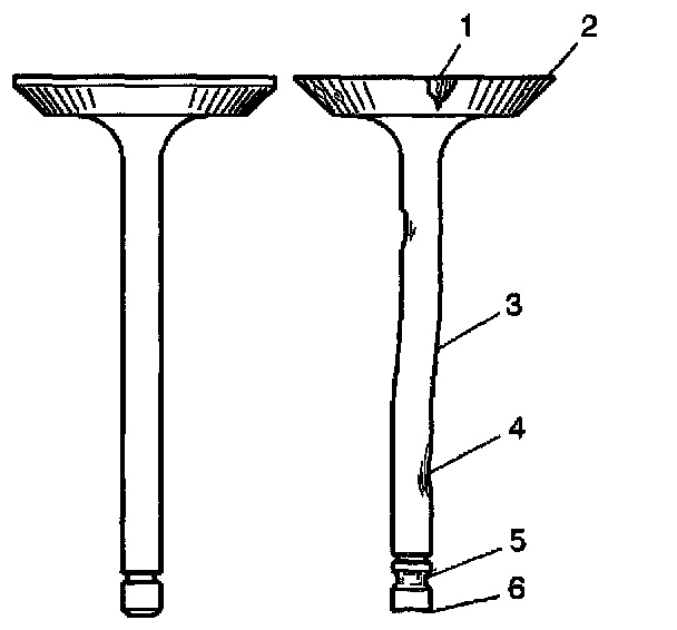 Replace the valve if the edge of the valve head is less than 0.79 mm (0.031 inch) thick after grinding.