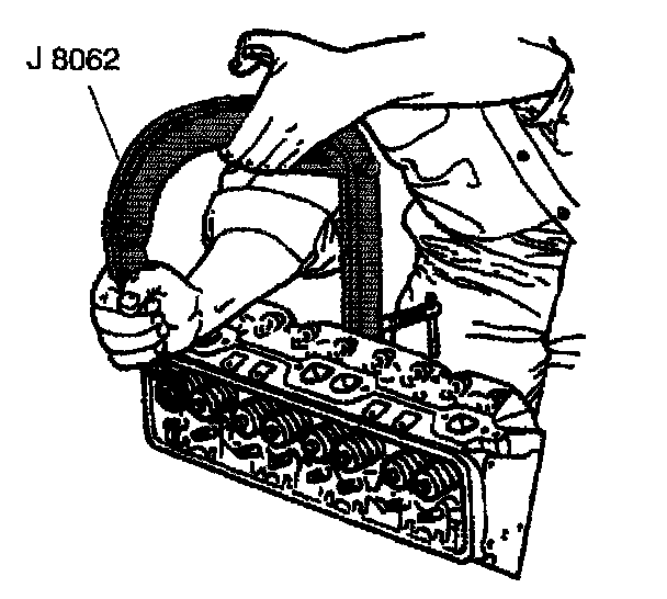 Caution: Compressed valve springs have high tension against the valve spring compressor. Valve springs that are not properly compressed by or released from the valve sprag compressor can be ejected from the valve spring compressor with Intense force. Use care when compressing or releasing the valve spring with the valve spring compressor and when removing or installing the valve stem keys. Failing to use care may cause personal injury.
