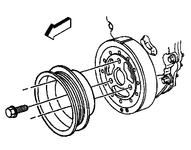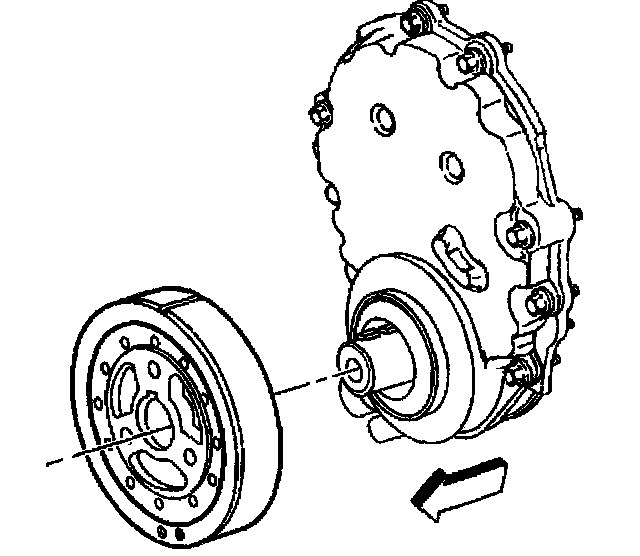Notice: The inertial weight section of the crankshaft balancer is assembled to the hub with a rubber type material. The correct installation procedures (with the proper tool) must be followed or movement of the inertial weight section of the hub will destroy the tuning of the crankshaft balancer.