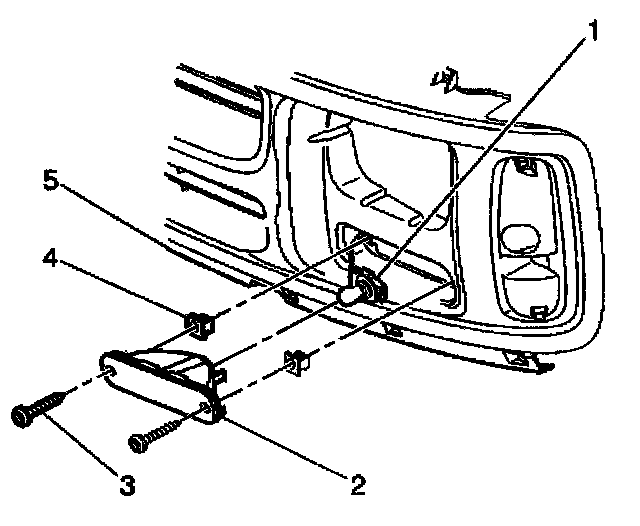 1. Remove the screws (3) that retain the park/[1][2]turn signal lamp to the radiator grille.