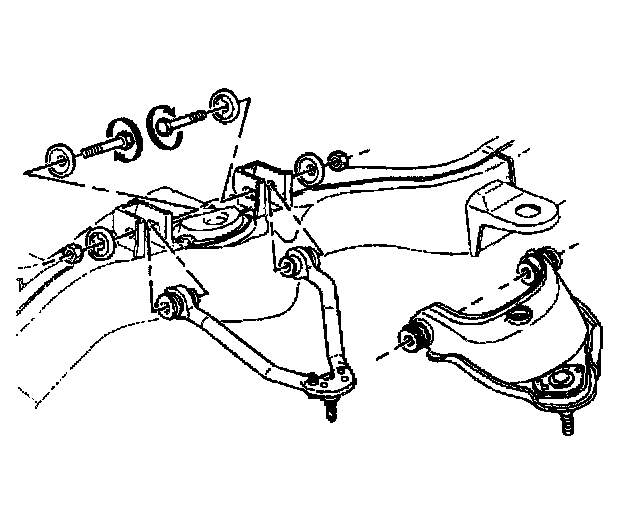 1. Install the upper control arm into the frame brackets. Refer to Upper Control Arm Replacement in Steering and Suspension.