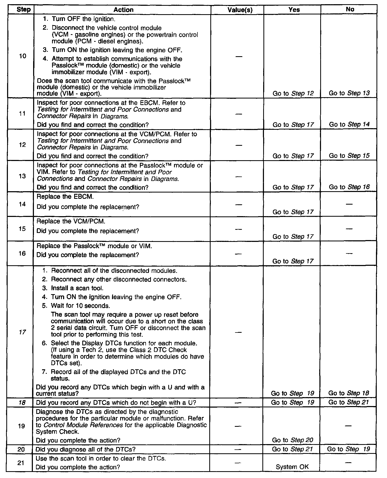 17. If there are no current DTCs that begin with a U, the communication malfunction has been repaired.