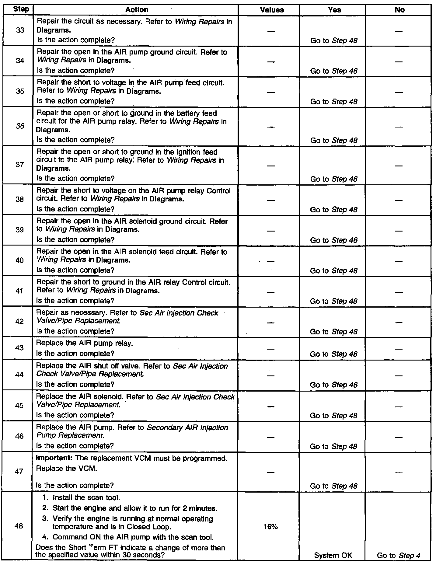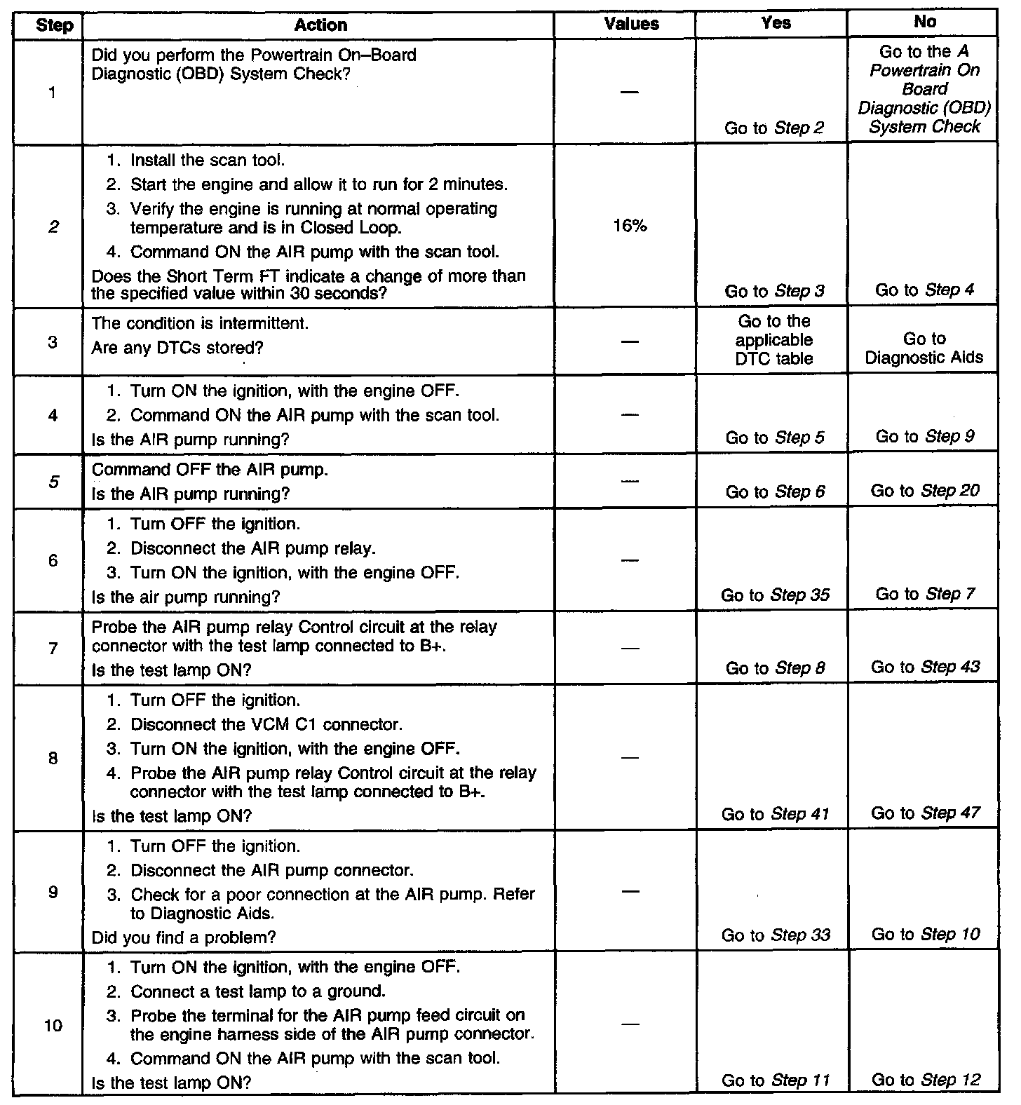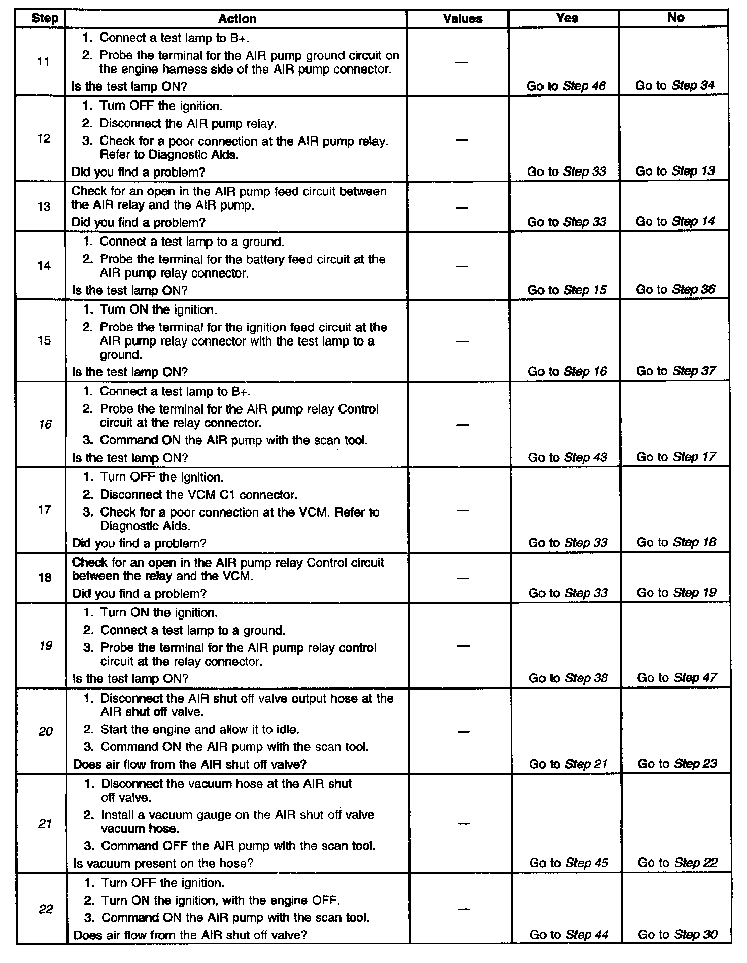 5. This step will ensure that the VCM is capable of turning the AIR pump OFF.