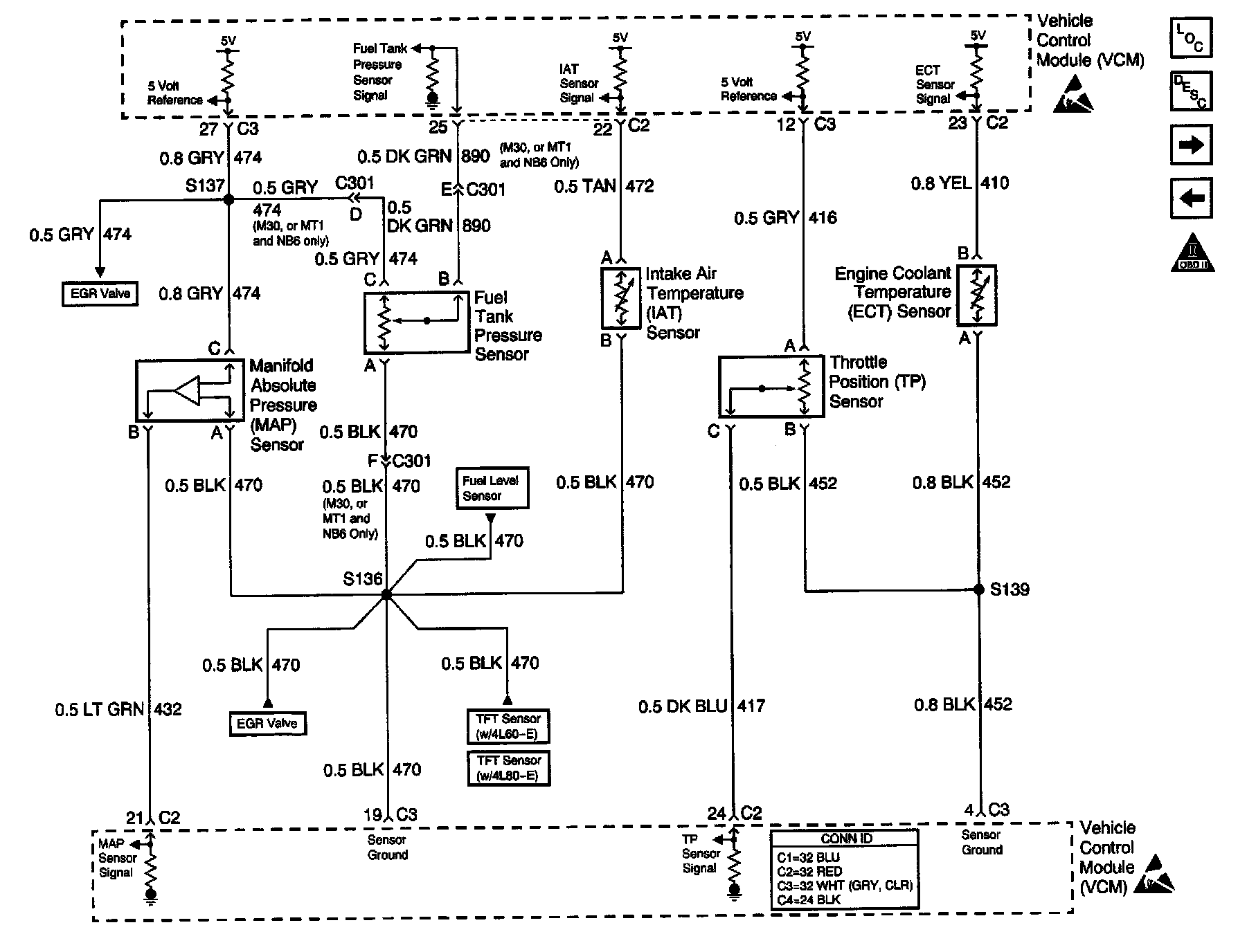 Engine Controls Schematics: Sensor Controls - MAP, Fuel Tank Pressure Sensor, IAT, TP Sensor, ECT: