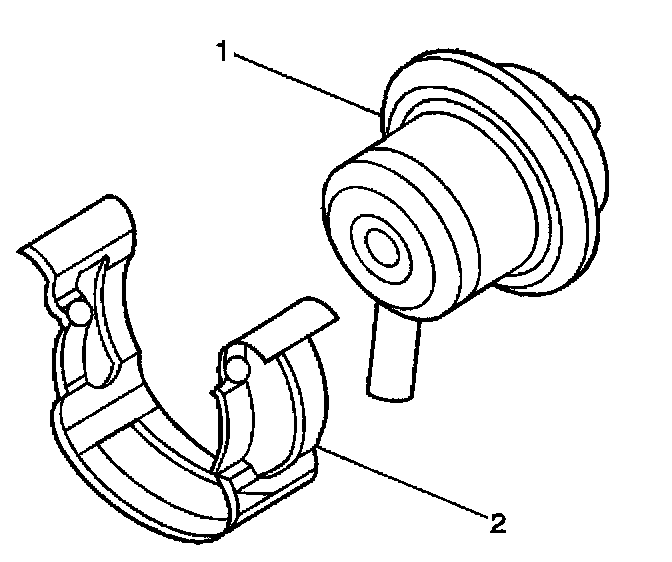 The fuel pressure regulator (1) is a diaphragm-operated cartridge relief valve with the fuel pump pressure on one side and the regulator spring pressure and intake manifold vacuum on the other. A retainer (2) holds the fuel pressure regulator.
