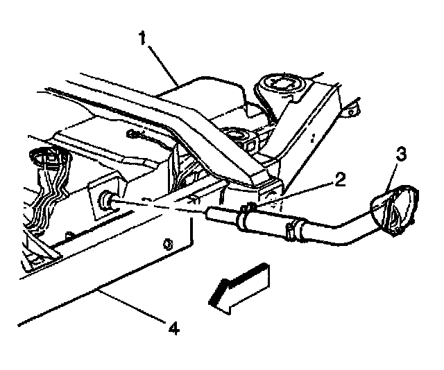 6. Remove the fuel tube attaching screws (2) and the fuel filler tube (3) from the fuel tank (1).
