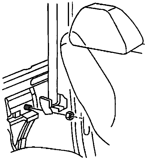 4. Remove the upper seat belt guide retaining bolt from the seat belt guide.