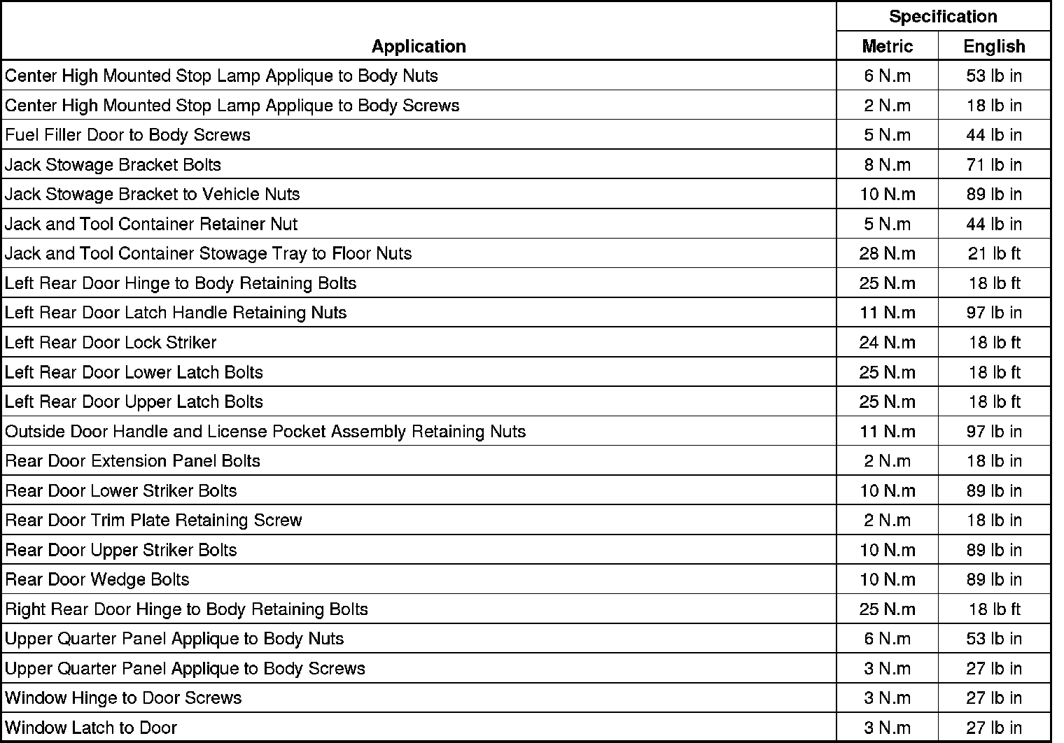 Fastener Tightening Specifications
