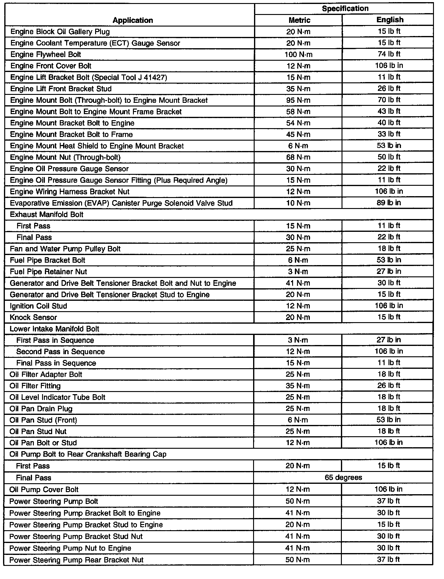 Fastener Tightening Specifications