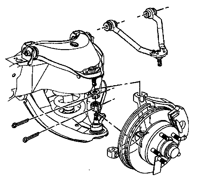 2. Install the upper and lower ball joints into the steering knuckle. Refer to Lower Ball Joint Replacement or Upper Ball Joint Replacement (Light Duty Suspension) or Upper Ball Joint Replacement (Heavy Duty Suspension).