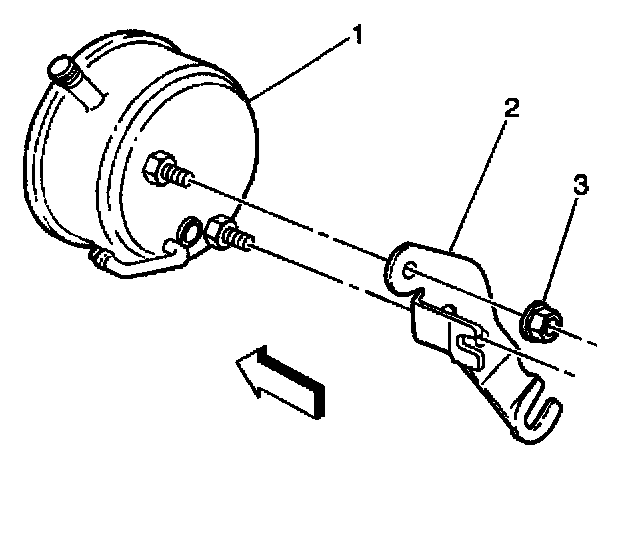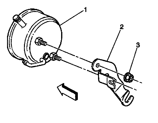 2. Install the steering pump brace retaining nut (3) to the vehicle.