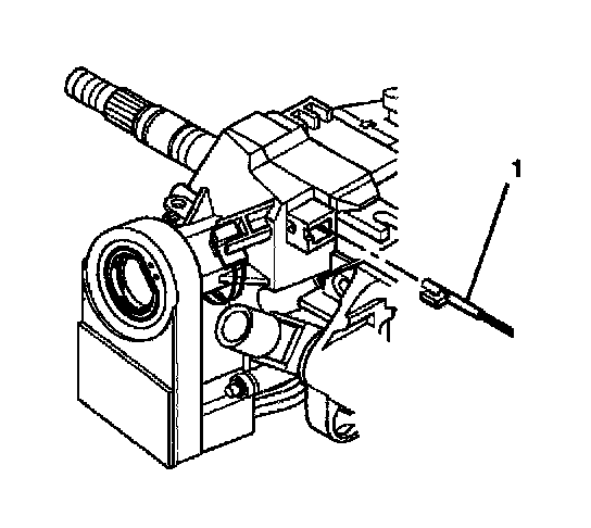 - Press the locking tab on the end of the park lock cable assembly (1) into the slot in the lock module assembly.
