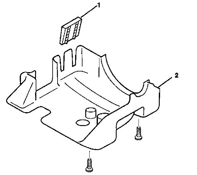 9. Screw the 2 pan head tapping screws (1) into the lower shroud (2).