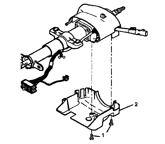 1. Install the upper shroud (2) onto the steering column.