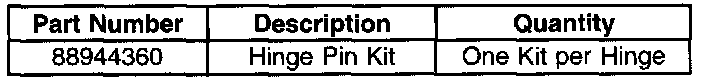 Replace the hinge pins and bushings following the instructions in the tool kit.