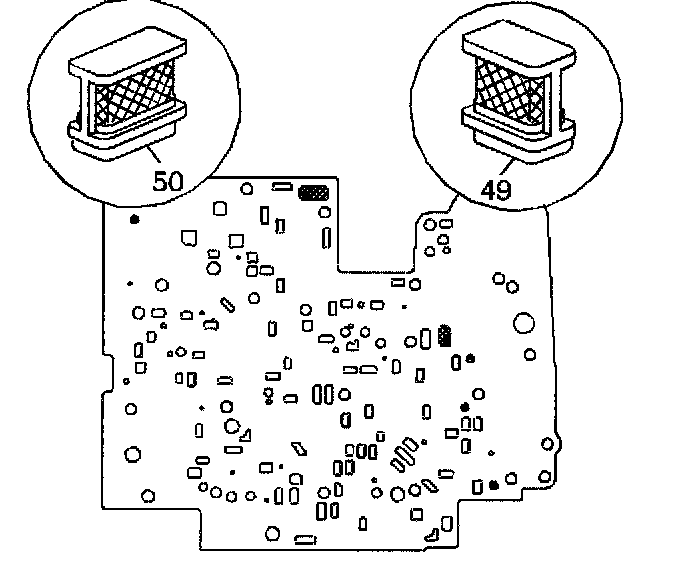 1. Inspect the valve body spacer plate and the solenoid screens (49, 50) for damage or debris. Replace the solenoid screens (49, 50) it necessary.