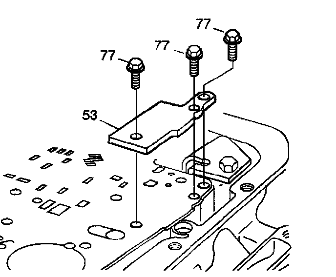 4. Place the spacer plate to case gasket (47) (identified by a "C") and the spacer plate to valve body gasket (52) (identified by a "V") on the spacer plate (48). Retain gaskets on the spacer plate with J 36850 or equivalent.