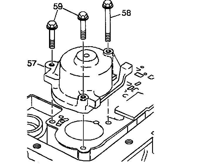 9. Install the 1-2 accumulator housing bolts (58, 59).