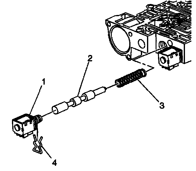 1. Remove the solenoid retainer (4) and the 1-2 shift solenoid (1).