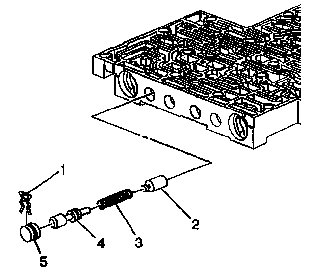 24. Remove the regulator apply valve (4) and the regulator apply spring (3) and the isolator valve (2).
