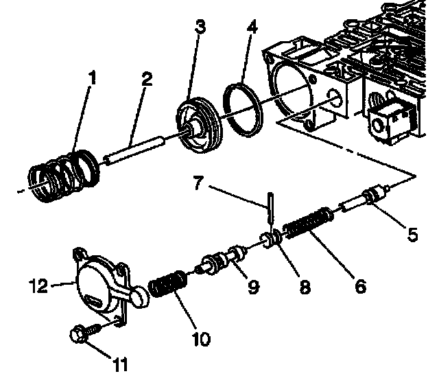 7. Remove the 1-2 accumulator valve (3) and the 1-2 accumulator valve spring (4).