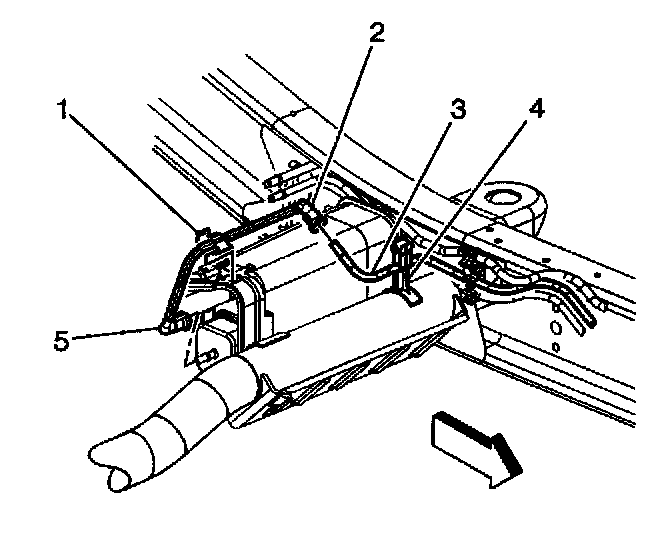 4. Disconnect the vent valve pipe (4) at the EVAP canister.
