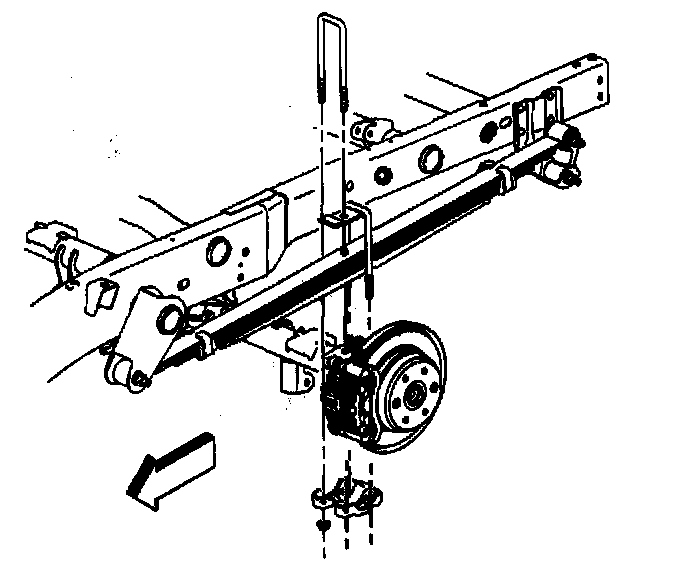 10. Remove the U-bolts, the spring plates and the spacers form the axle assembly.