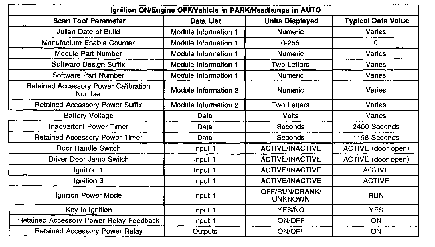 Scan Tool Data List: