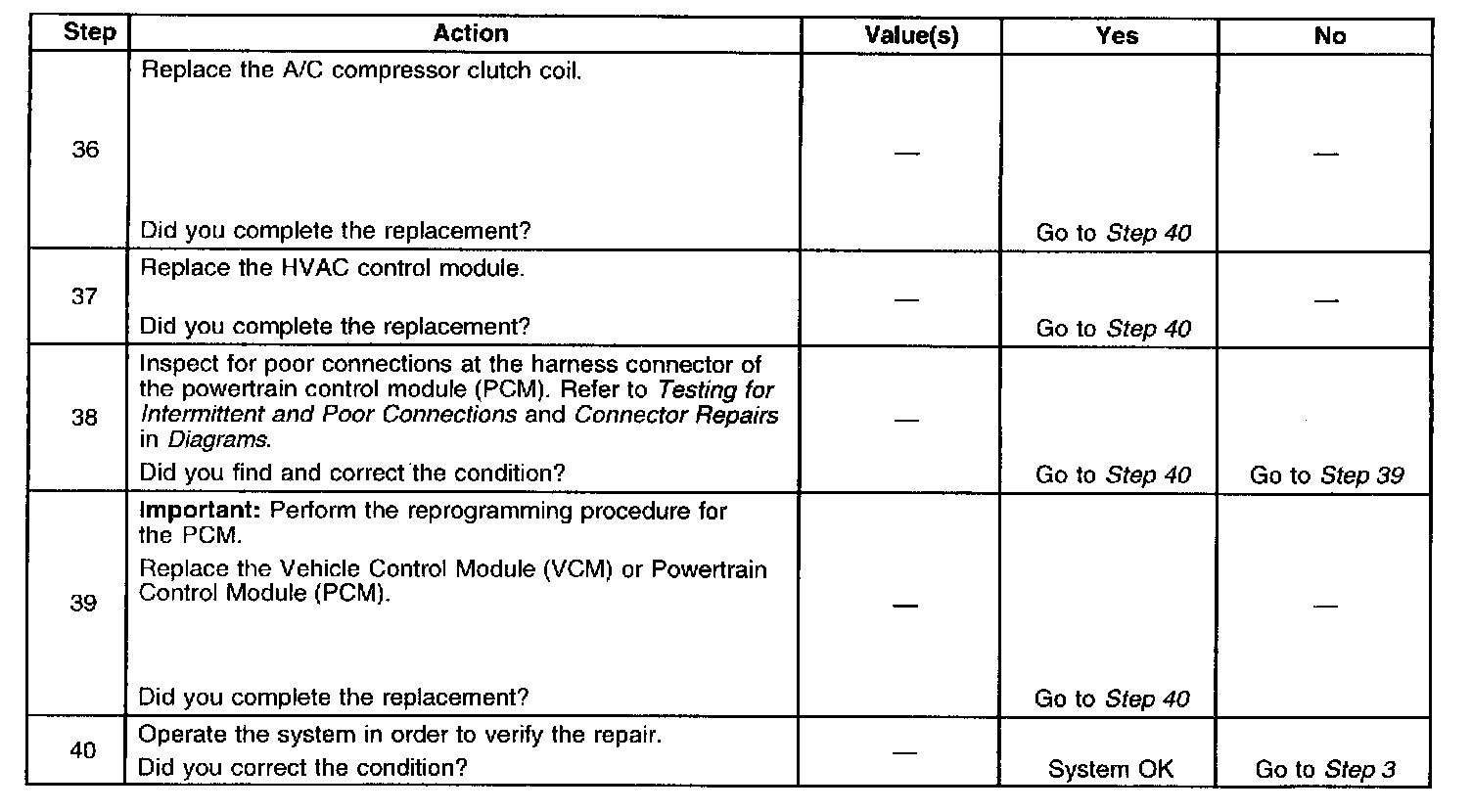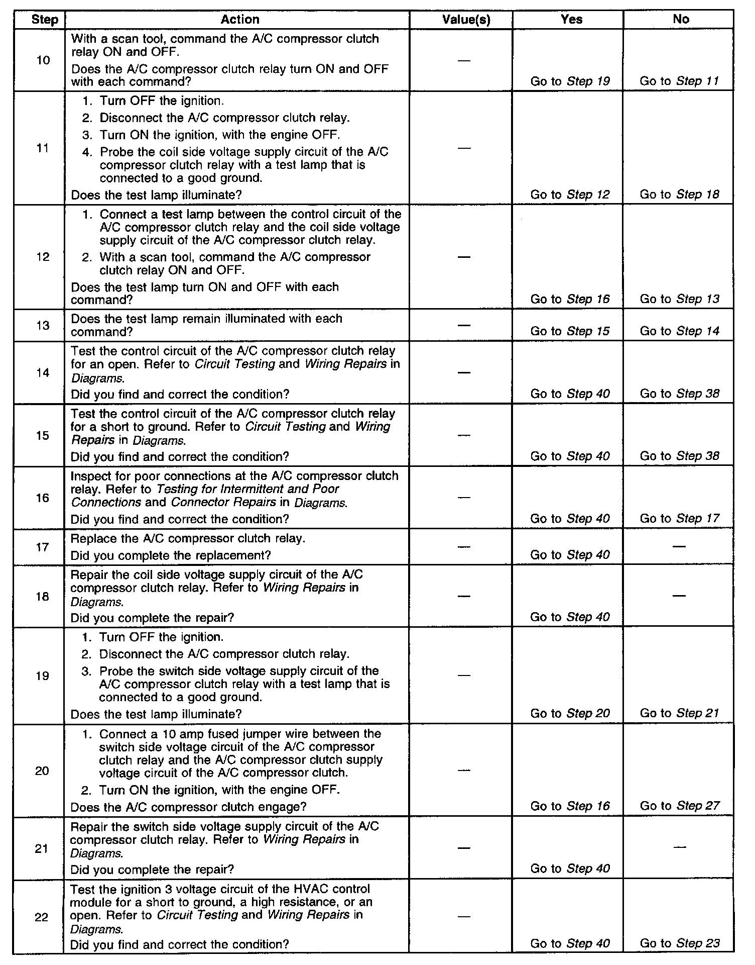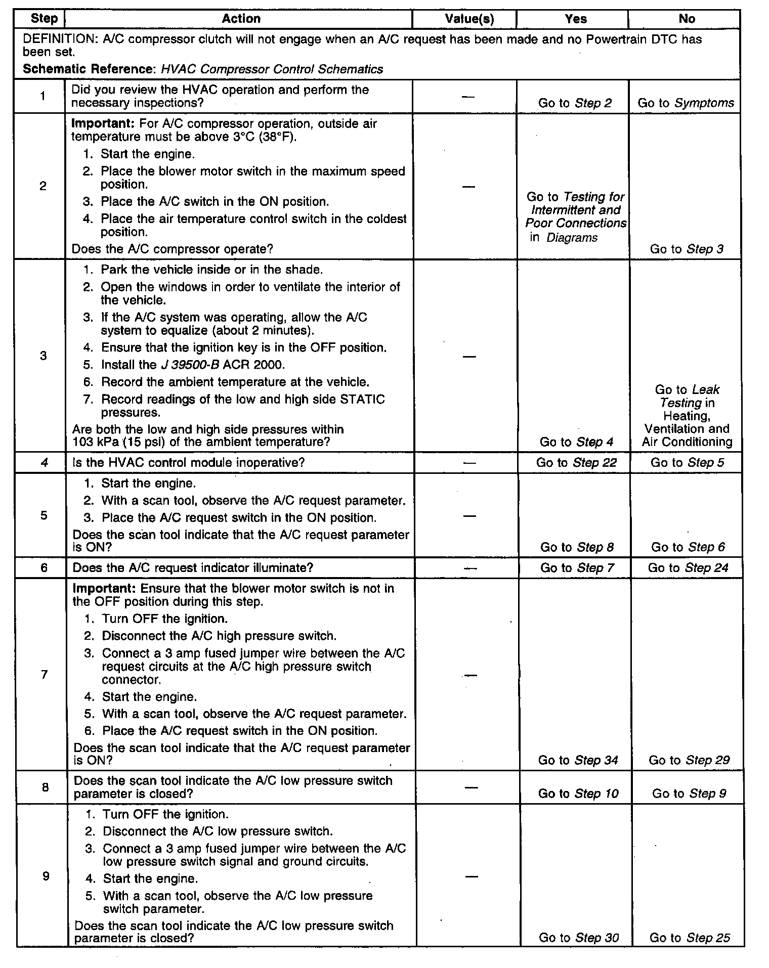 The number(s) below refer to the step number(s) on the diagnostic table.