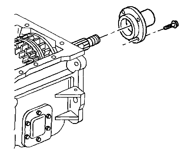 ^ Remove the bolts securing the extension housing to the transmission.
