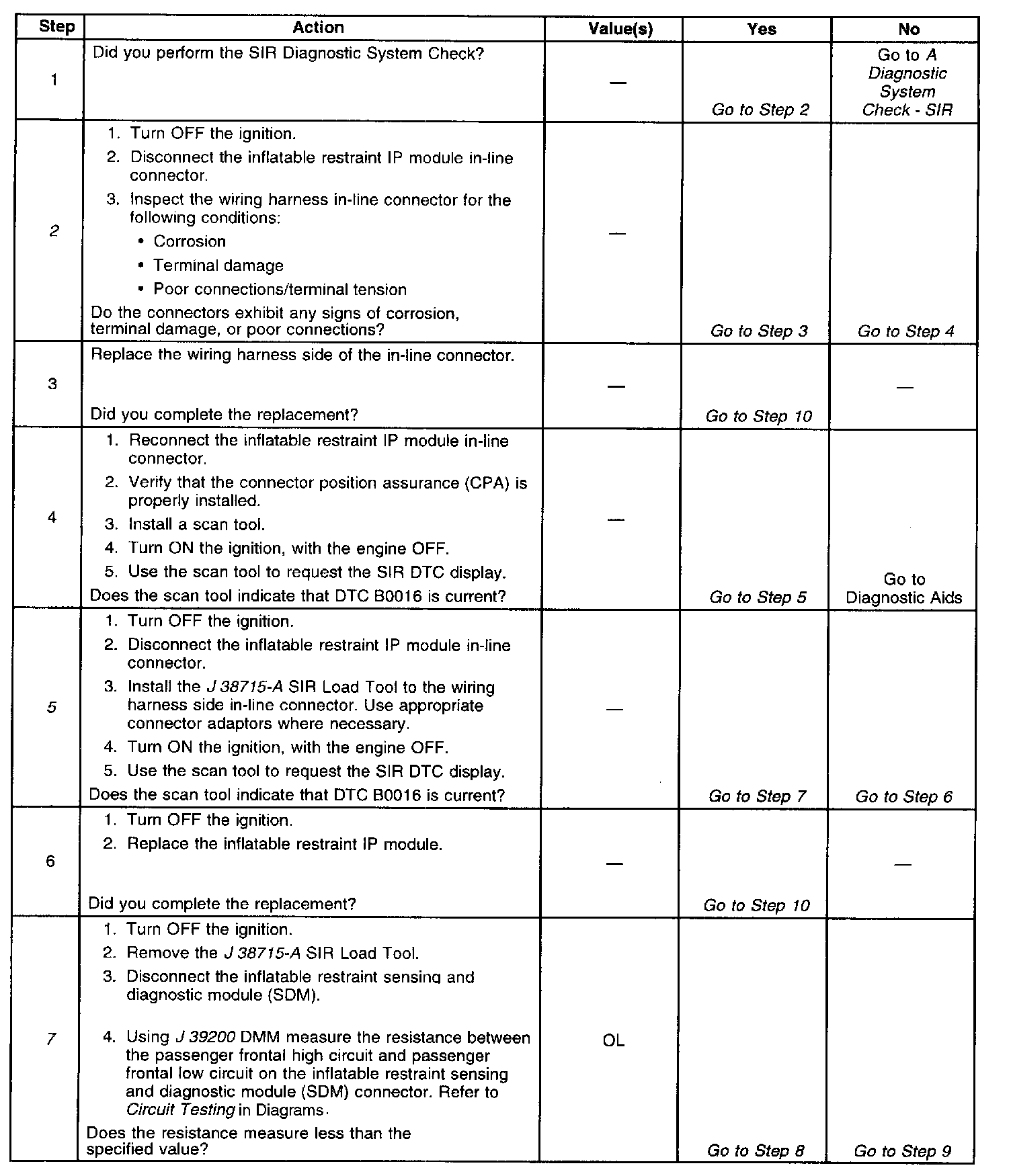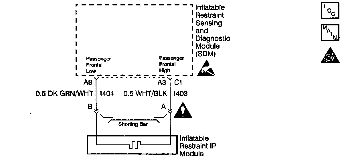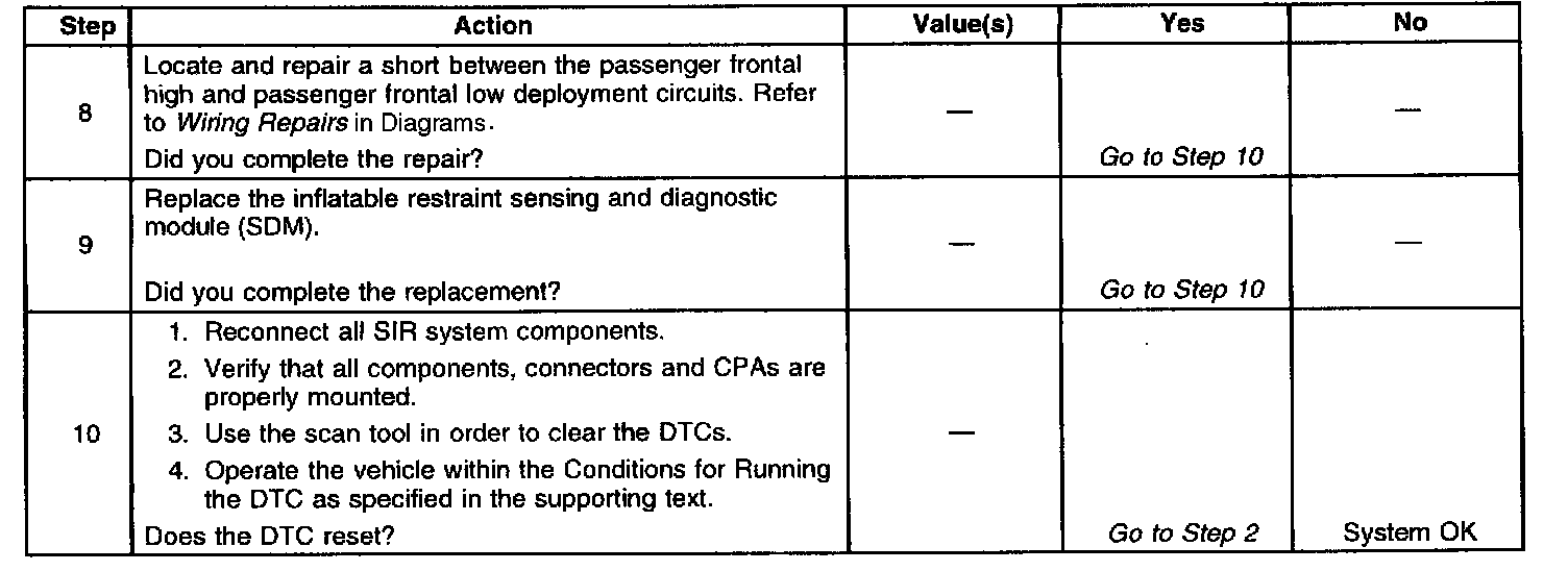 7. Tests for a short between passenger frontal high and low deployment circuits or if there is a malfunctioning SDM.
