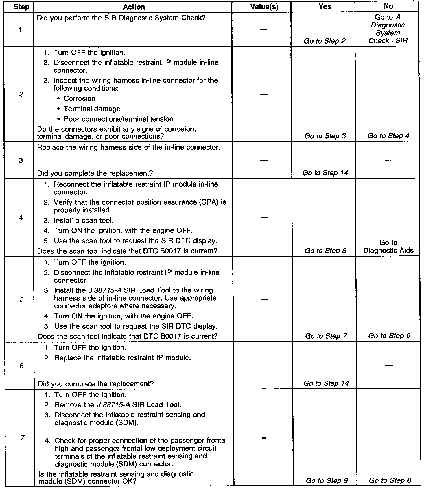 DTC B0017 RF/Passenger Frontal Deployment Loop (Single Stage or Stage1) OpenSchematic: