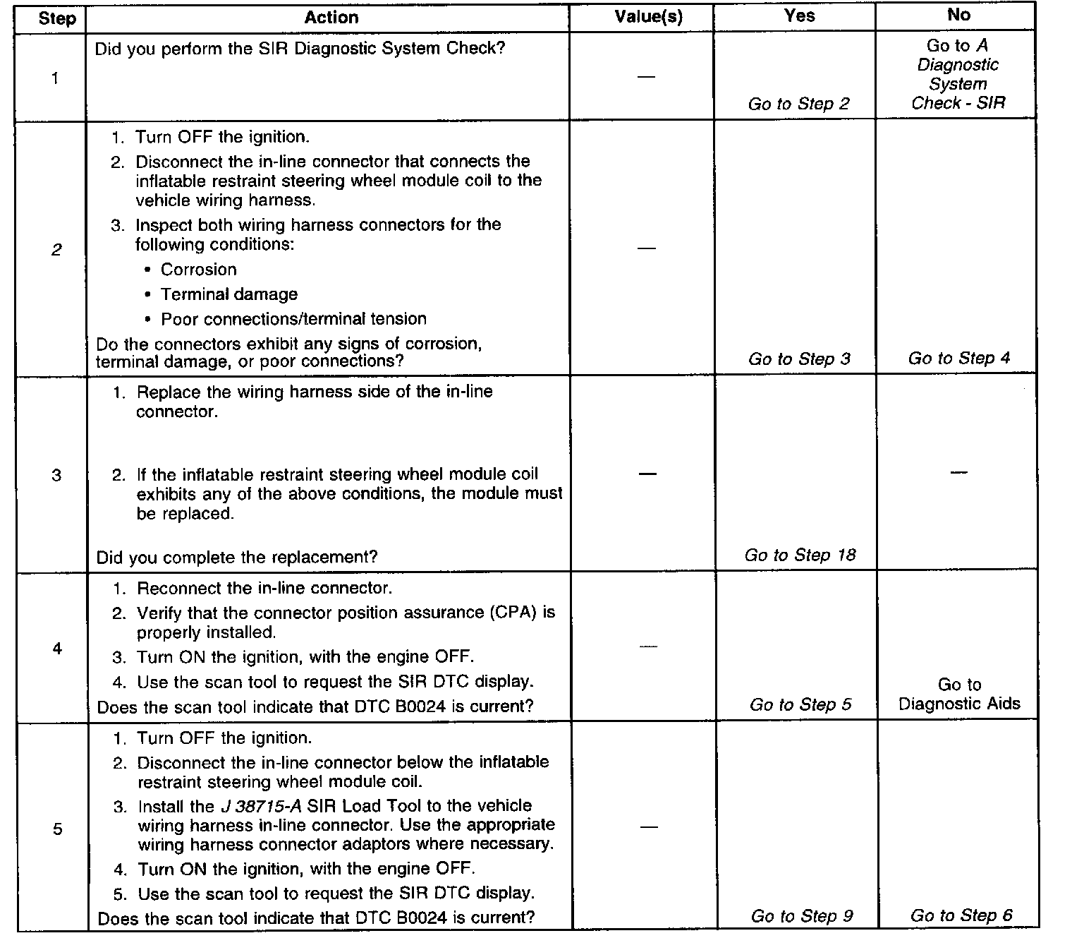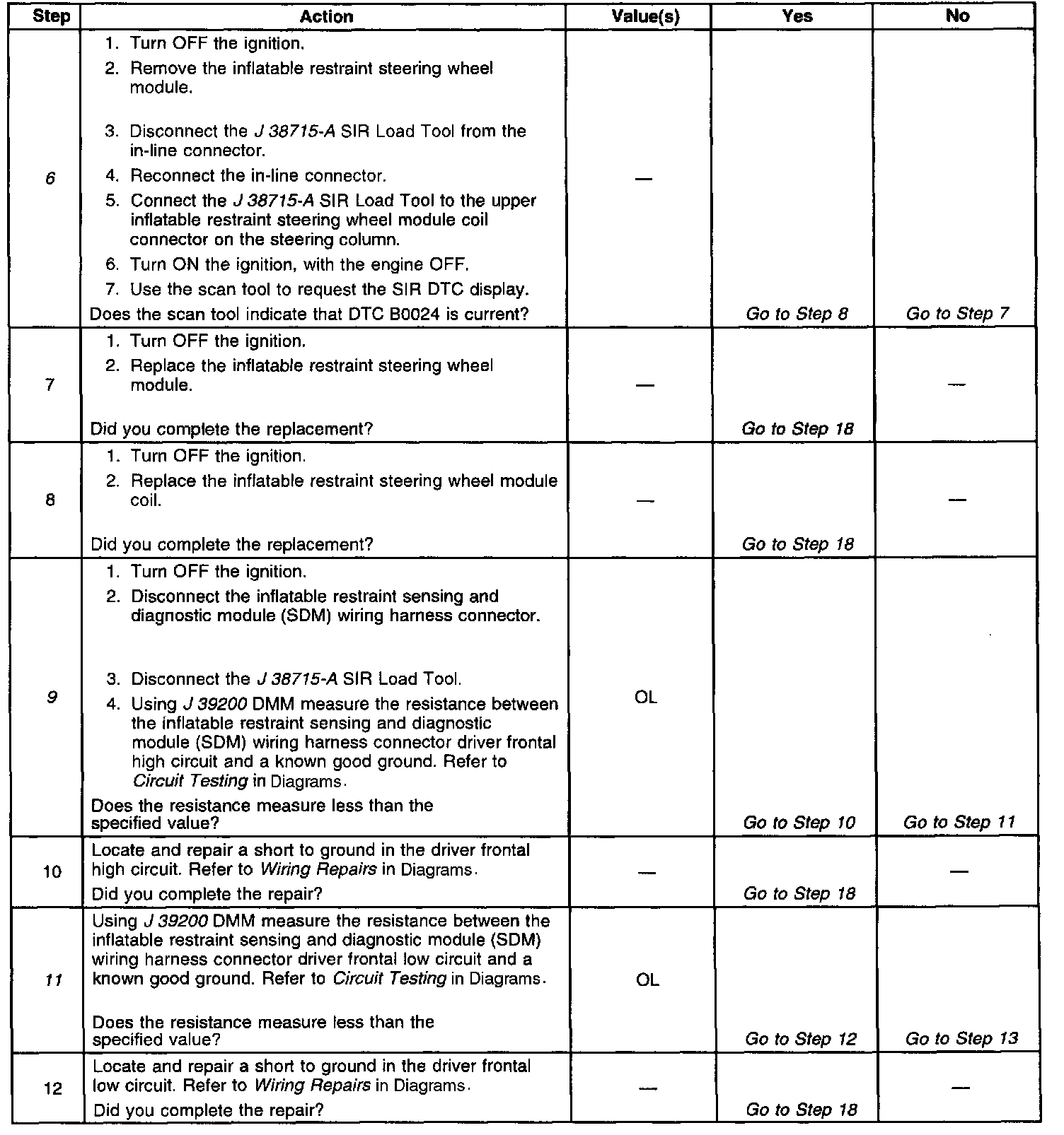 DTC B0024 LF/Driver Frontal Deployment Loop (Single Stage or Stage 1) Short to Ground/Voltage Out of RangeSchematic: