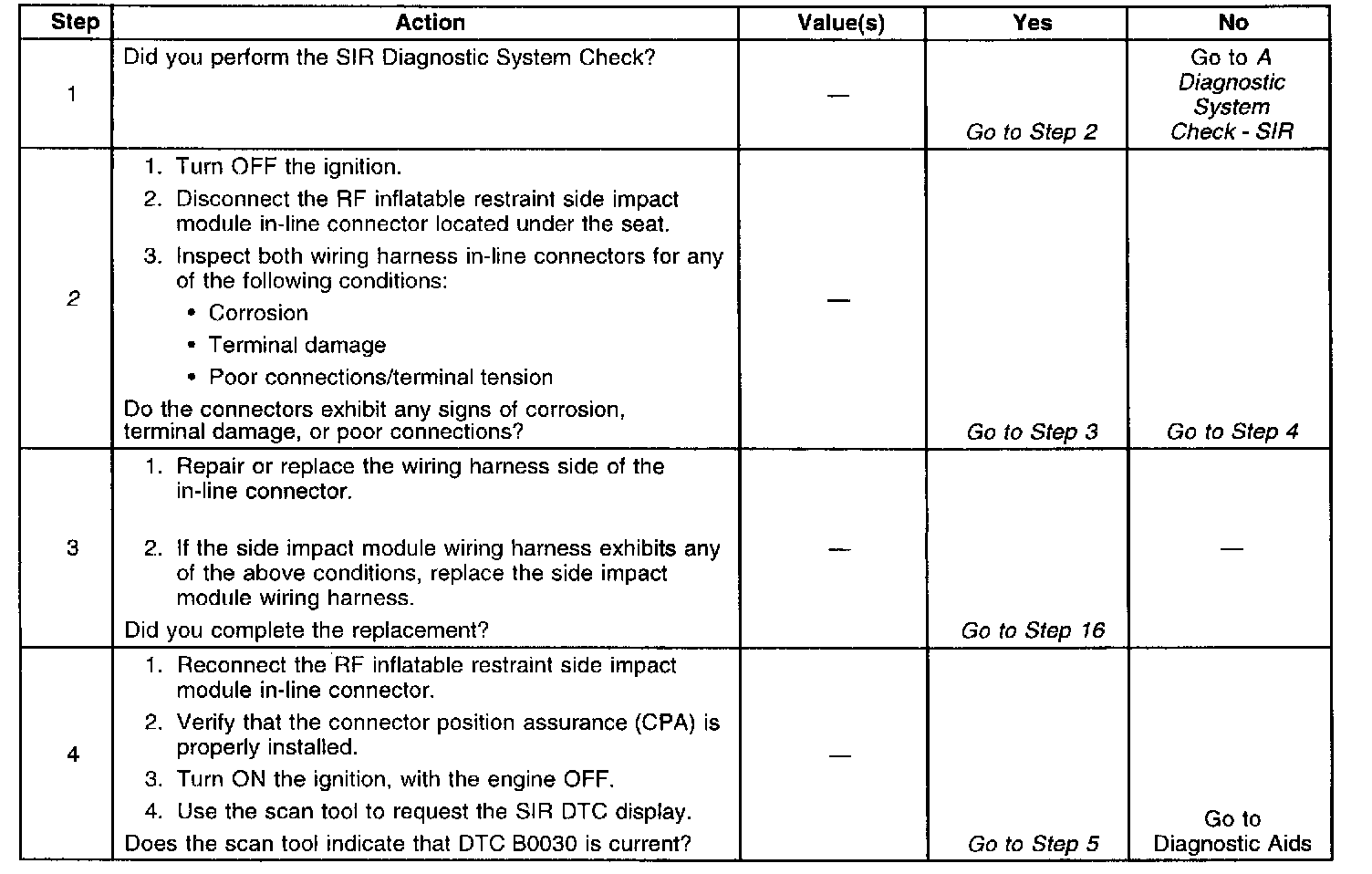 DTC B0030 RF/Passenger Side Deployment Loop Short to Ground/Voltage Out of Range
