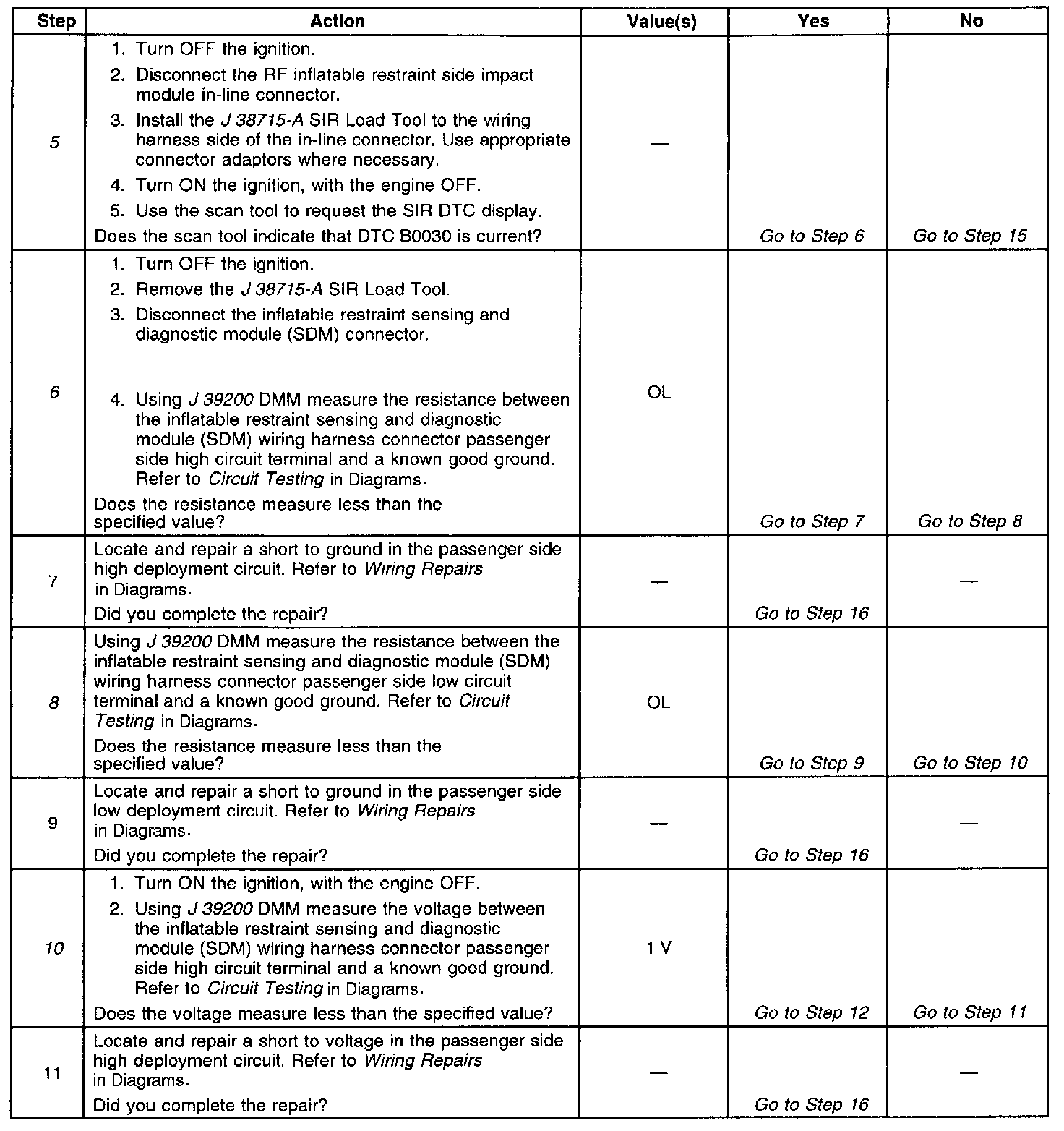 ^ Deployment loop resistance measurement test If the voltage out of range test detects a short to voltage condition, the resistance measurement test for that deployment loop will not be performed.