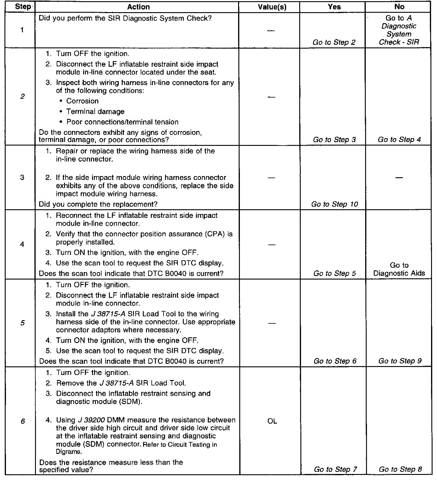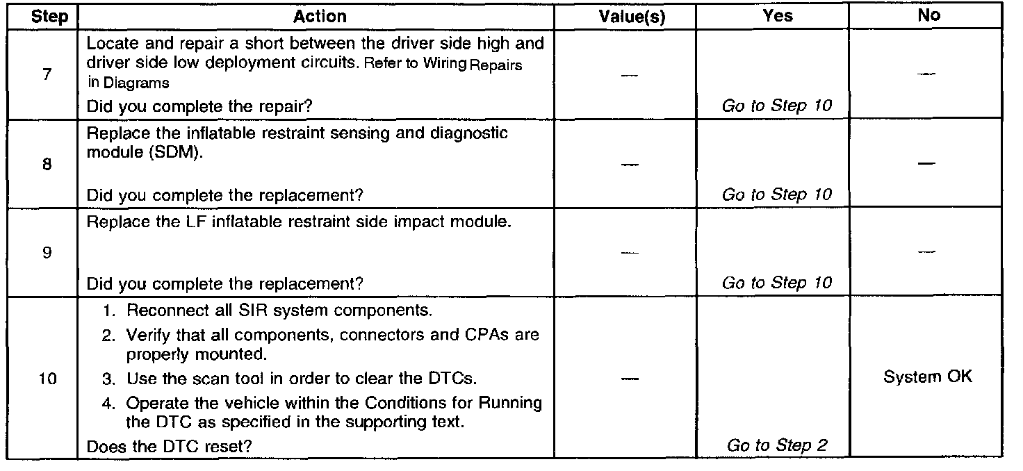 6. Tests for a short between the driver side high and low deployment circuits or if there is a malfunctioning SDM.