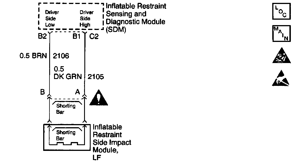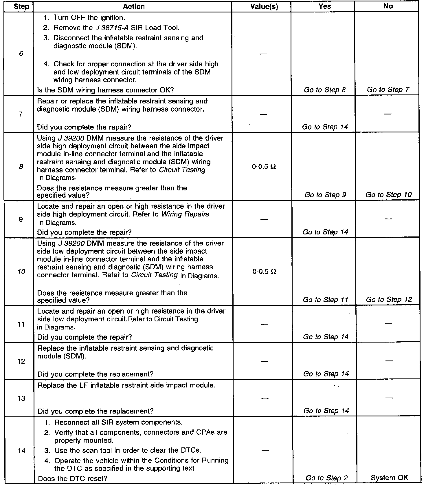 ^ The SDM detects the resistance between the driver side high and low side deployment loop is greater than 4.8 Ohms for 500 milliseconds.
