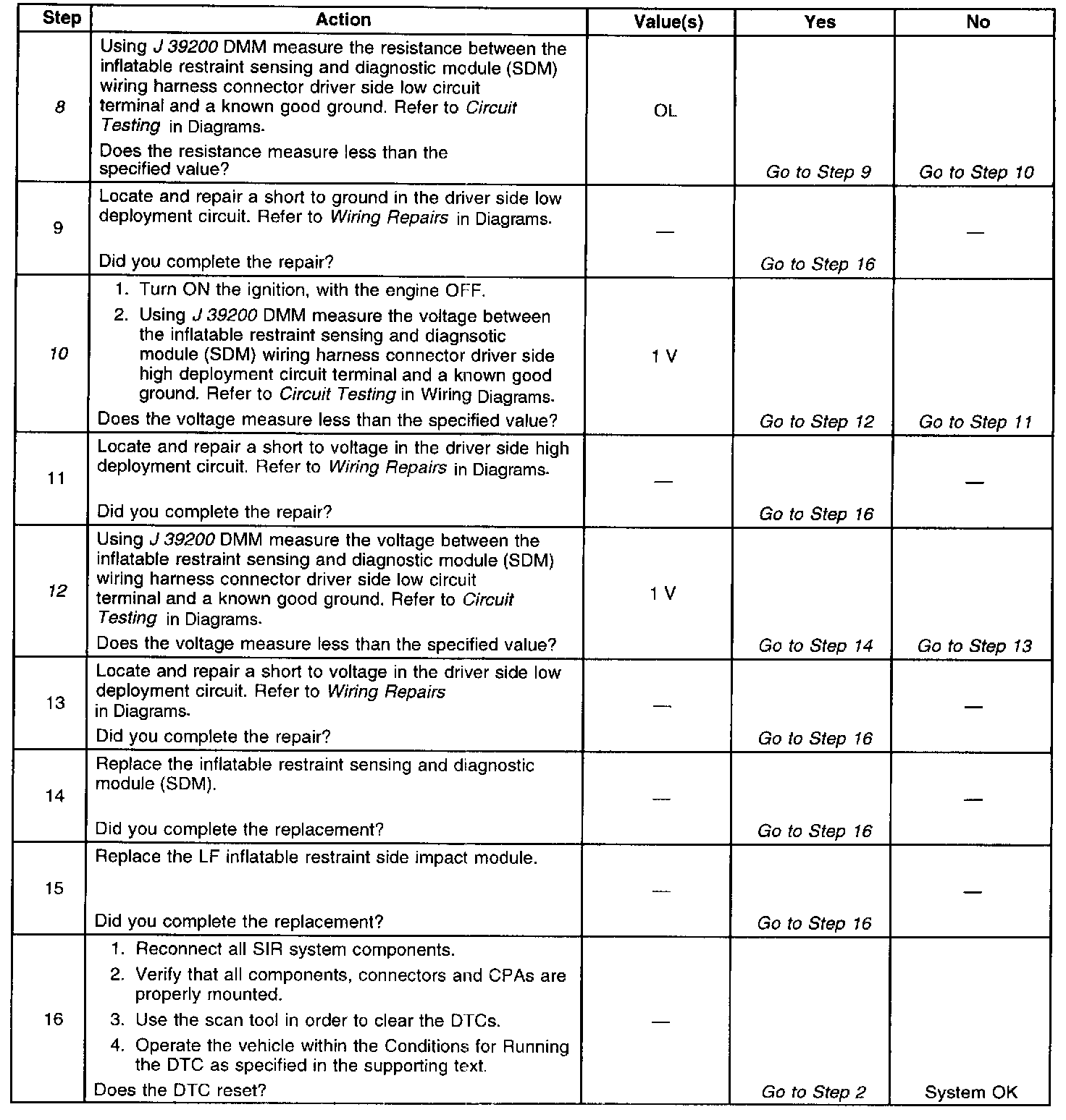 12. Tests for a short to voltage in the driver side low deployment circuit or if there is a malfunctioning SDM.