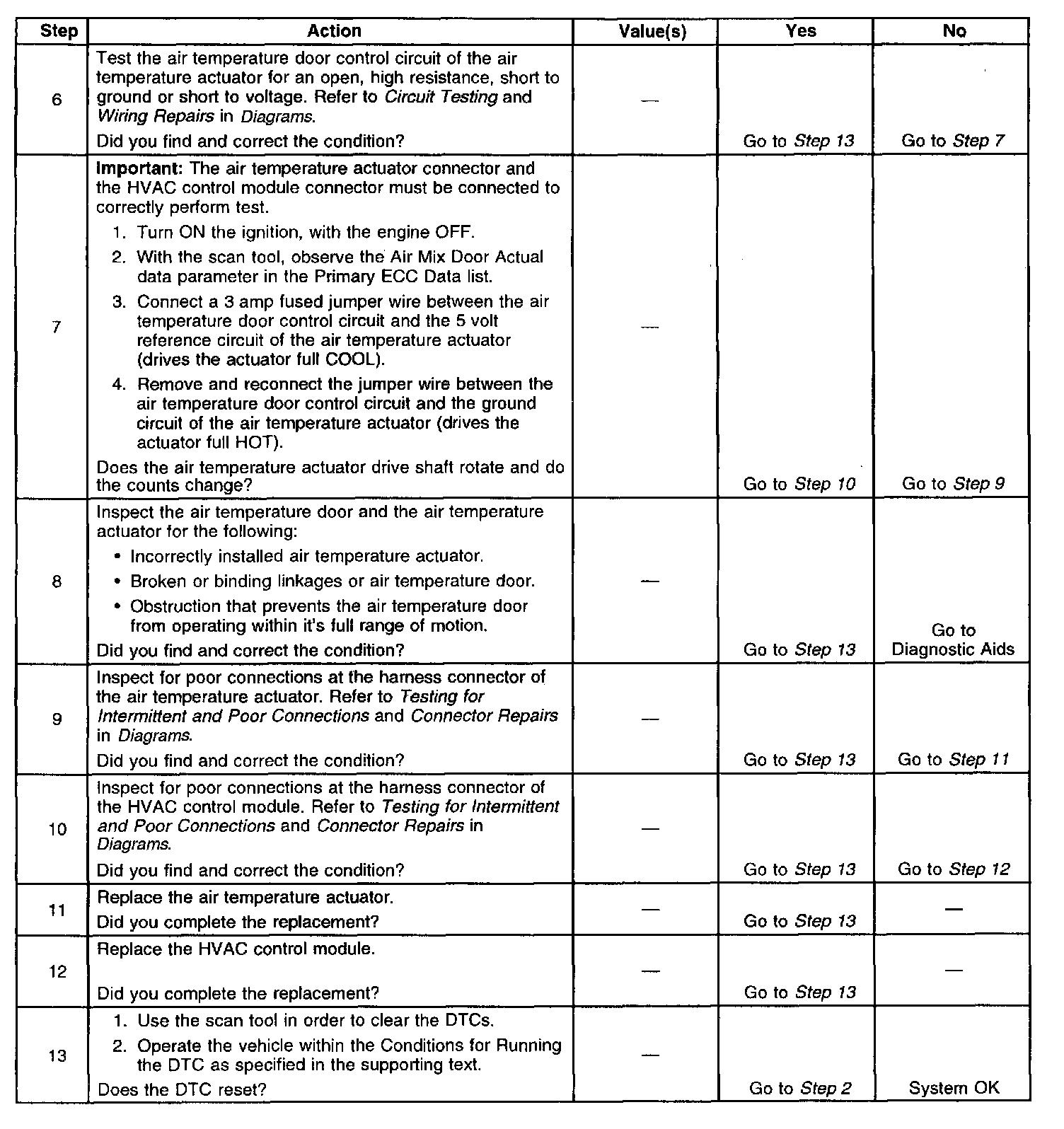 - A damaged or broken air temperature door and or actuator can cause this DTC to set.