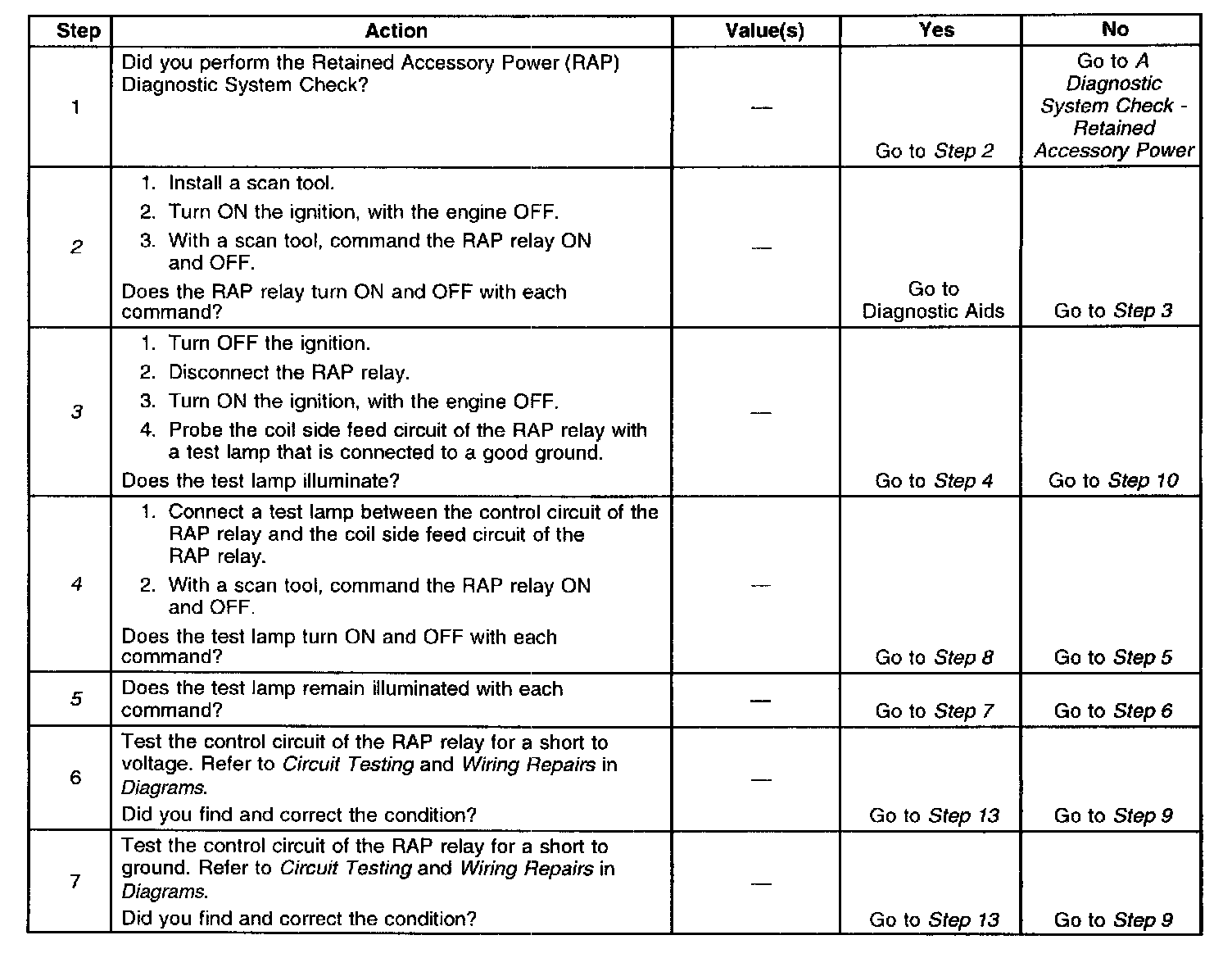 3. Tests for voltage at the coil side of the RAP relay. The RAP fuse supplies power to the coil side of the RAP relay.