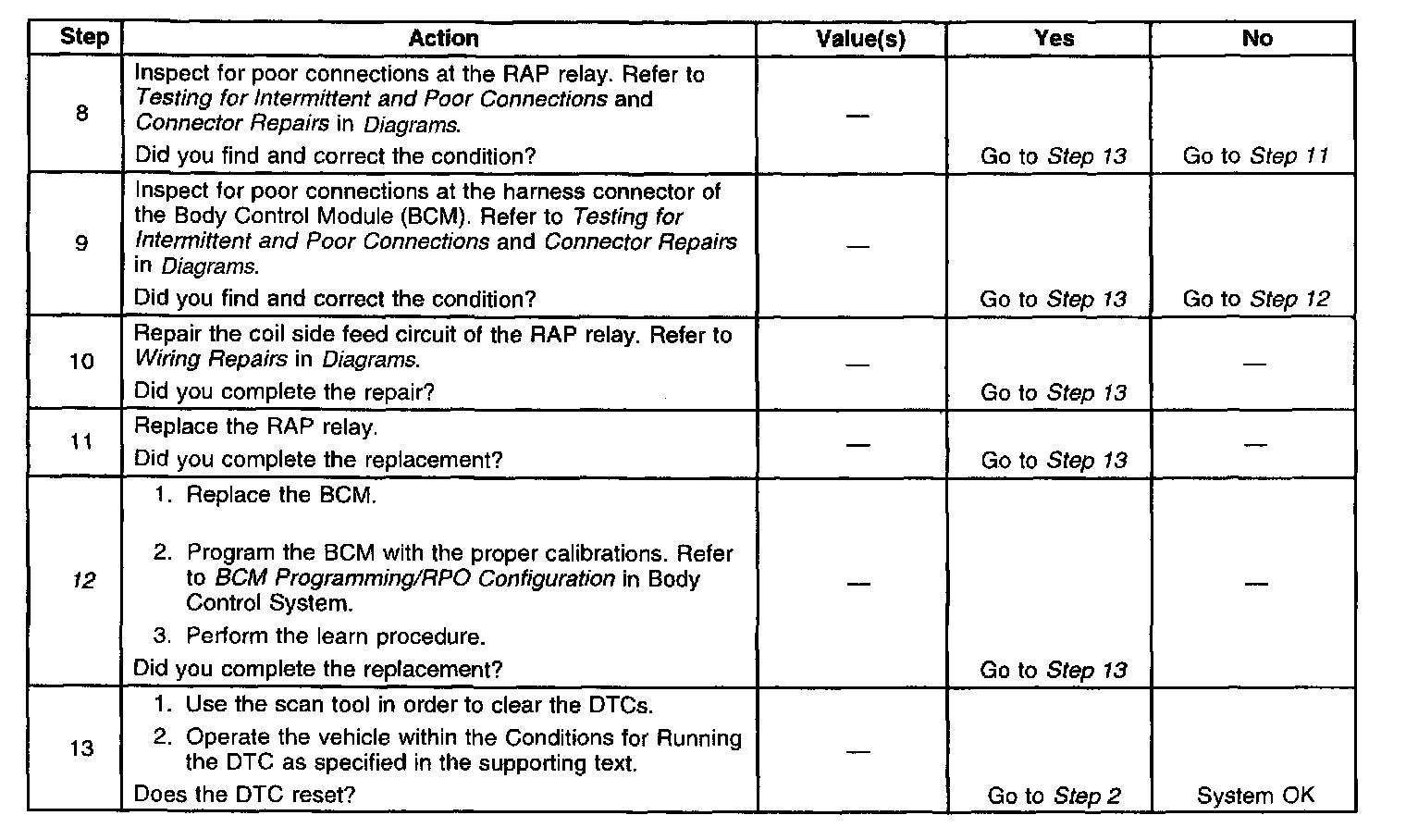 4. Verifies that the Body Control Module (BCM) is providing ground to the RAP relay.