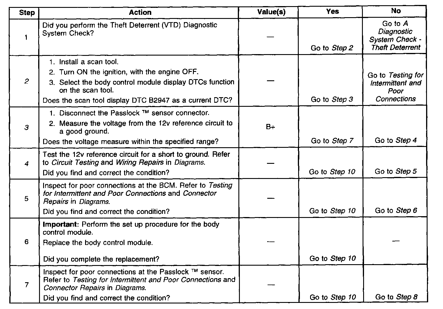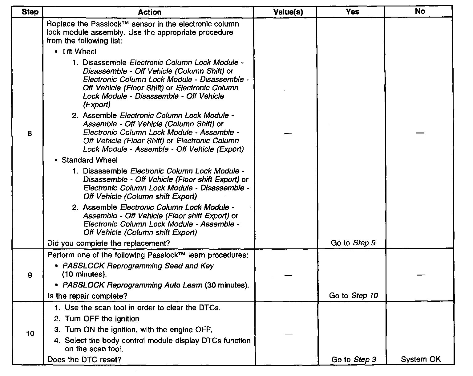 ^ Use a scan tool in order to inspect the Passlock(TM) data voltage and the Passlock(TM) code.