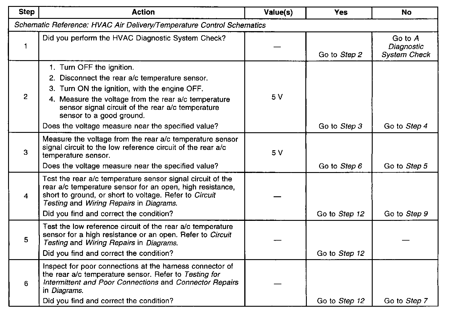 The number(s) below refer to the step number(s) on the diagnostic table.